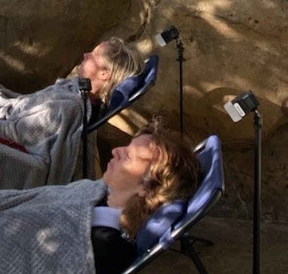 Cover the crown of the head with light. The beam spreads out so you only need to place the SolaraGem about 6 to 8 inches, or the length of your hand, above the crown of the head. There's no need to be exact. In most cases, you will begin your SolaraGem session on the crown.