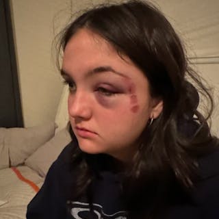 The bruising and decolorization are gone, eye and face are completely healed. NO headaches or concussions symptoms.